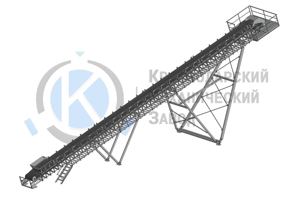 Для любых сыпучих грузов (щебень, песок, зерно) допустимый наклон до 20 градусов для гладкой ленты и 30 градусов для шевронной ленты.- Рама ферменного типа.
